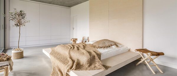 Phòng ngủ thư giãn: Đường nét đơn giản và nội thất được làm từ vật liệu tự nhiên là những yếu tố đặc trưng của phong cách kiến trúc zen, hướng đến sự hòa hợp giữa con người và thiên nhiên bằng cách sử dụng ánh sáng tự nhiên qua kiến trúc để tạo nên một nguồn năng lượng tích cực, đưa mọi thứ trở về trạng thái cân bằng. Những tone màu của thiên nhiên như màu của đất luôn được sử dụng cho tường hoặc vật dụng nội thất, khi được phối hợp với những màu trung tính như màu trắng sẽ giúp mang lại sự hài hòa và tươi sáng cho không gian. Bạn có thể sử dụng tinh dầu với mùi hương của thiên nhiên như sả, chanh hoặc trà, vv… giúp mang đến cảm giác thư giãn và giấc ngủ ngon.